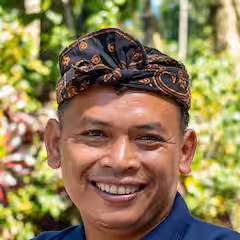With 20 years as a professional guide, Gede’s passion is sharing the authentic Bali he knows intimately. ‘There is so much unique culture and natural beauty here,’ he explains, ‘from religious ceremonies and beautiful temples to preserved forests, fresh air, stunning rice fields, and clean rivers.’ He loves introducing guests to the daily life of local farmers and traditional silver and wood artisans.